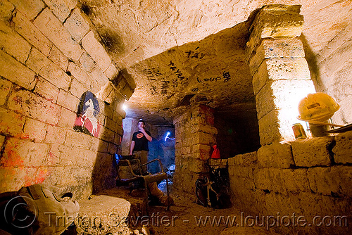 This is a part of the 200 Km network of ancient tunnels not opened to the public, but regularly visited by trespassing urban cavers called "cataphiles". See more information in the album description.