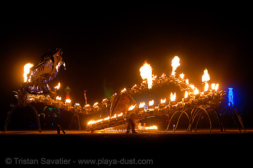 Serpent Mother - Giant Snake Skeleton Fire Sculpture - Vertebras - Burning Man 2006