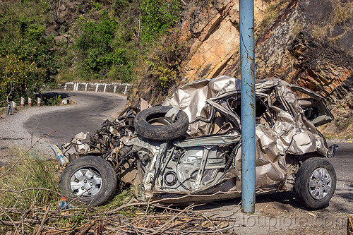 Photos of traffic accidents on the roads of India and Nepal.