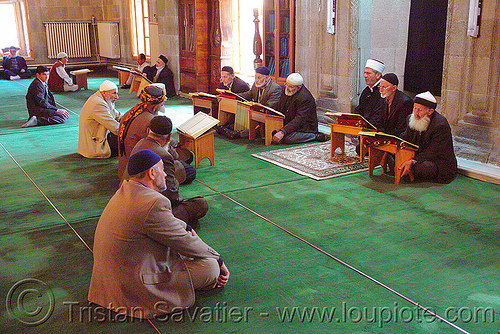 Muslim Men Studying the Quran in Mosque