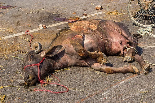 Another one had brain injuries (concussion) and was dying in spasm. Two others were already dead, with broken limbs, abdominal injuries, severe road rash and head trauma, and Indian men came with with freight tricycles and hauled them away (probably to the nearest butcher shop!).